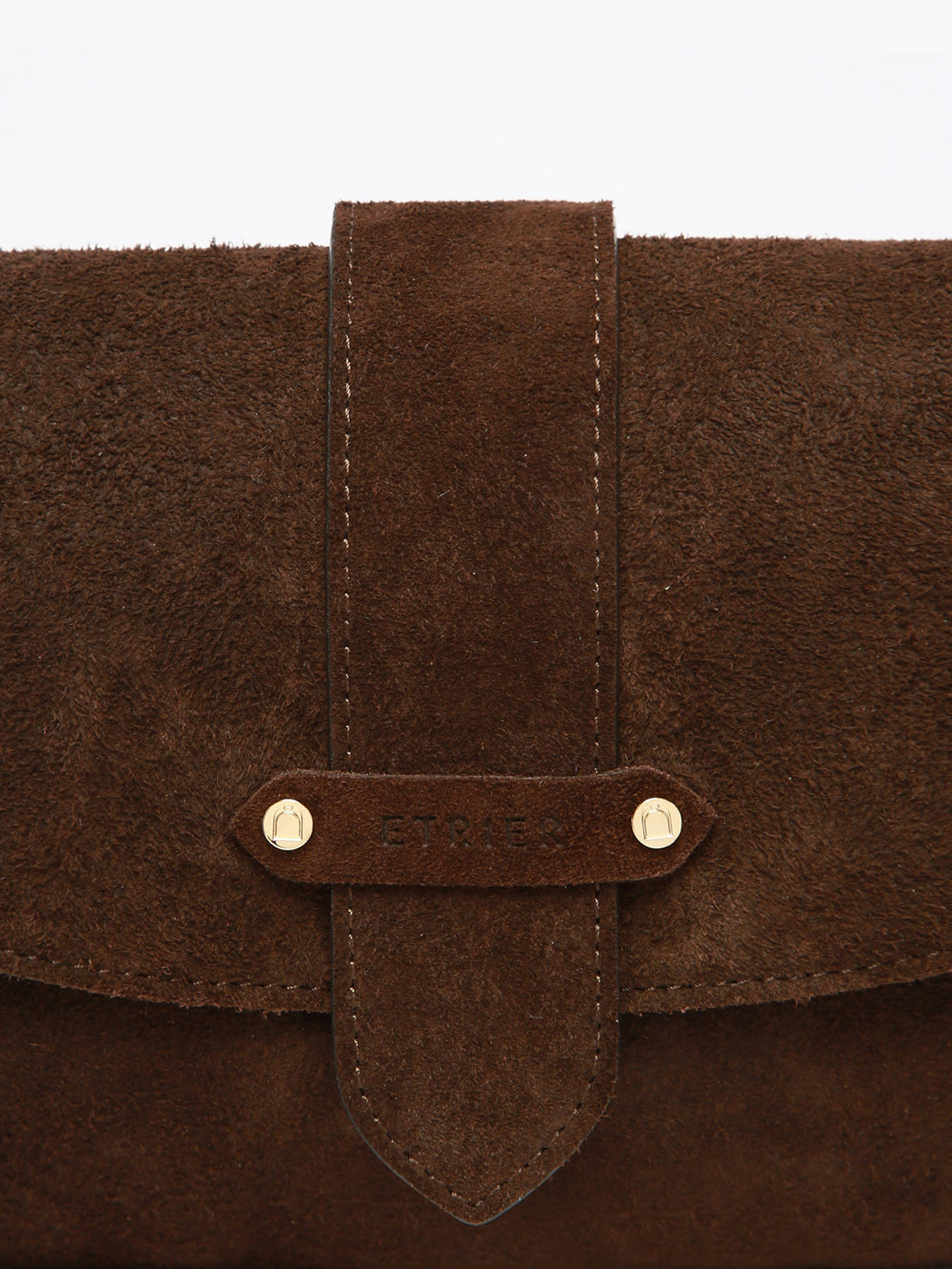 Le logo ETRIER, embossé sur du cuir naturel, est accompagné d'un petit drapeau français, symbole discret du savoir-faire artisanal.