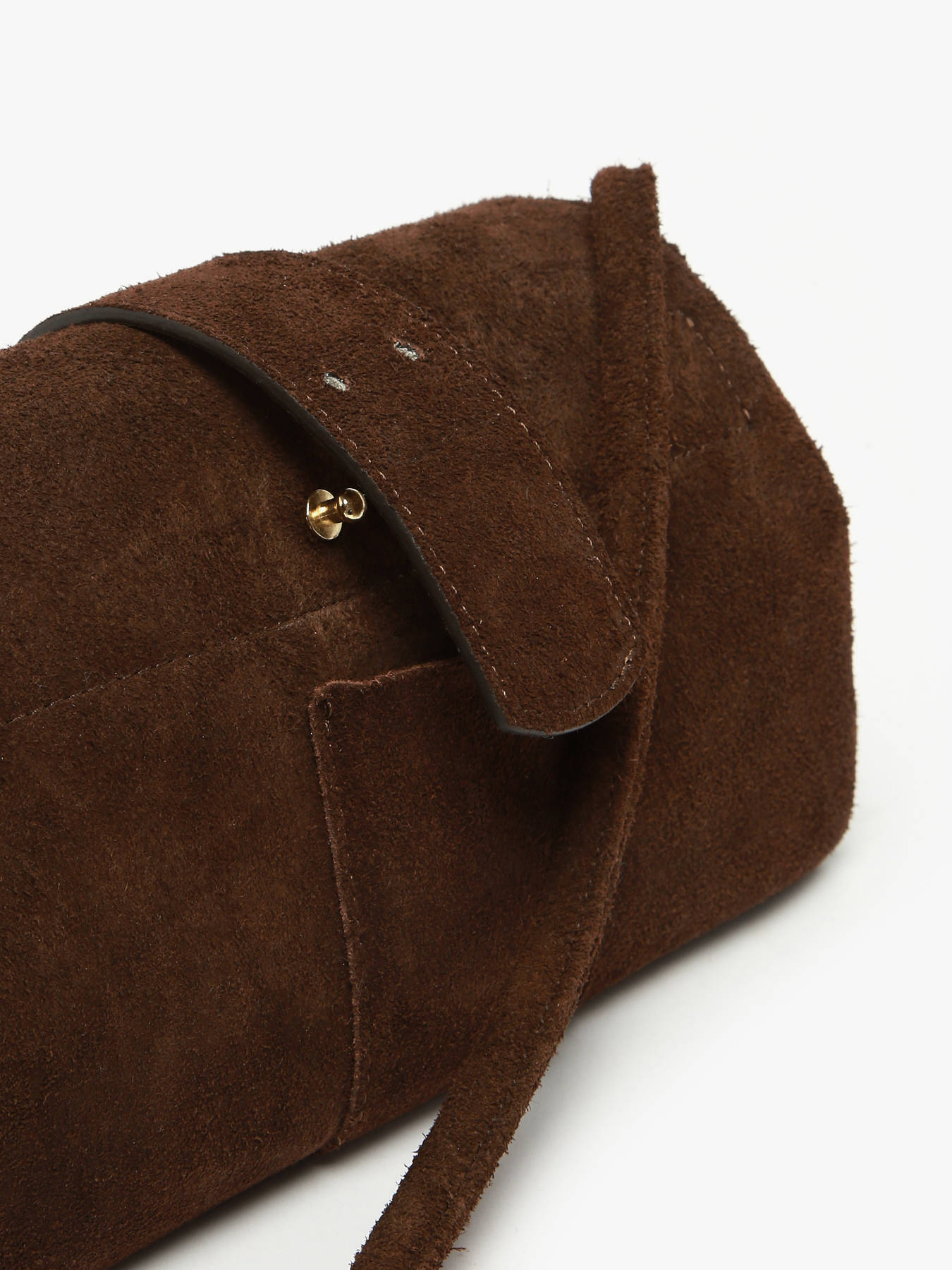 Le sac porté bandoulière AGNES par ETRIER est conçu en cuir velours italien, offrant une texture douce et raffinée. Ce modèle est présenté ici en taille M et se ferme par un rabat doté d'un bouton-pression aimanté. Il existe également en taille S pour celles et ceux qui préfèrent un format plus compact. Le sac est agrémenté d'une languette réversible, composée d'une face dorée et d'une face en cuir assortie au reste du sac. Elle se fixe aisément grâce à deux boutons de col et se glisse dans une poche arrière prévue à cet effet.