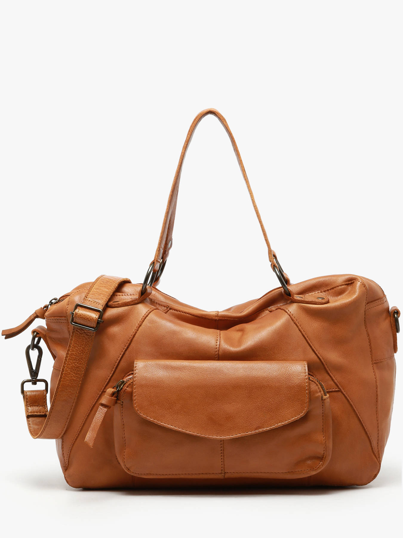 Sac à main Pieces, de la ligne Naina, à porter soit croisé ou long sous le bras soit à la main. Très pratique pour transporter ses affaires au quotidien, il dispose d'une grande poche à rabat avant pour ranger les petits effets ainsi que trois poches intérieures : deux simples et une zippée. Son grand compartiment est idéal pour les femmes actives qui ont toujours beaucoup d'affaires à ranger. Un sac d'une belle qualité de cuir et très fonctionnel grâce à sa bandoulière amovible.