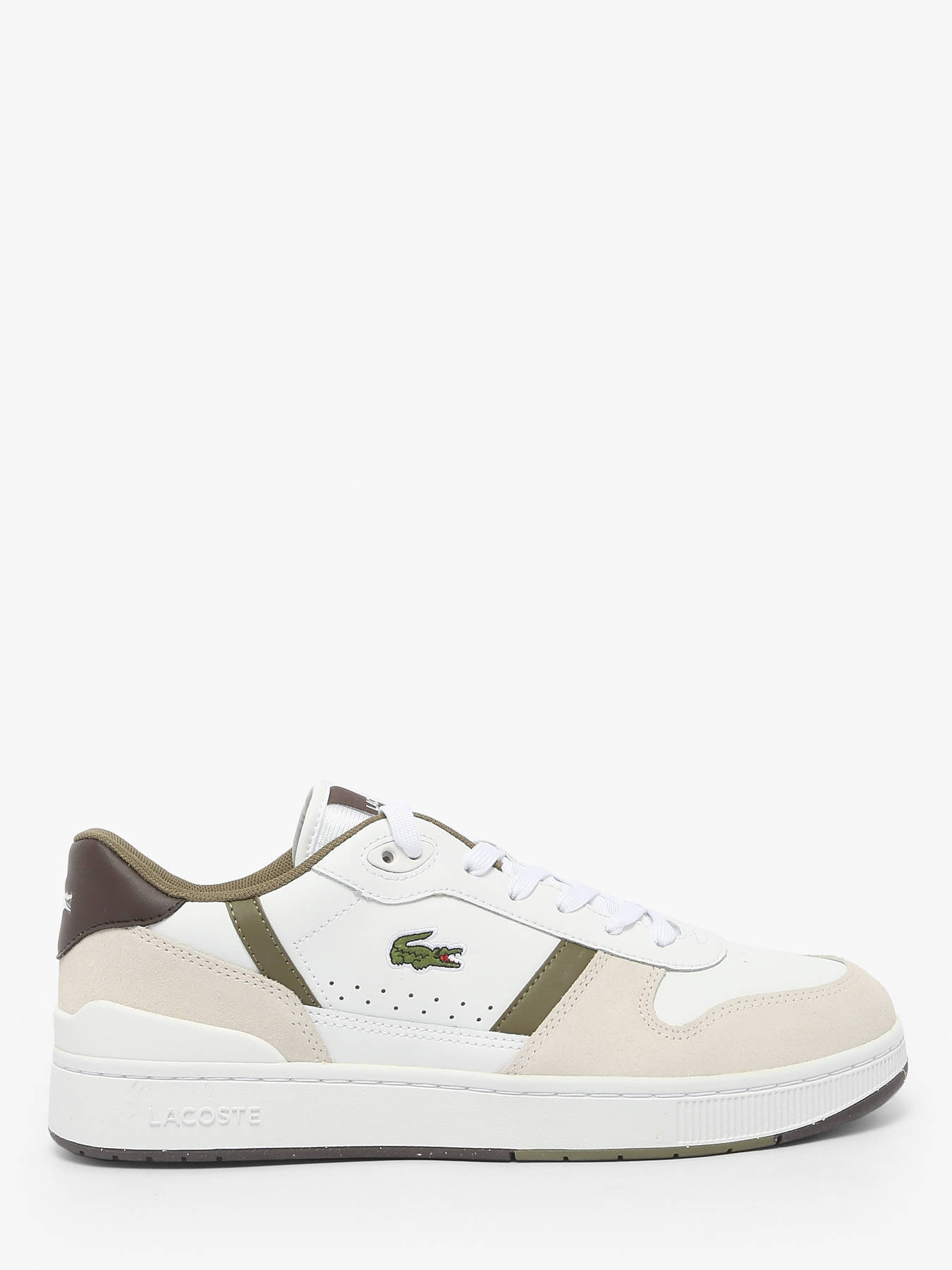 Les sneakers T-Clip Set de LACOSTE réinterprètent avec style les codes du tennis des années 1980. Leur tige en cuir blanc est sublimée par des empiècements suédés kaki et des finitions vintage soignées pour un look rétro authentique. Le crocodile débossé au centre signe l’élégance emblématique de la marque. Alliant confort, qualité et allure, ces sneakers offrent un parfait équilibre entre esprit sportif et sophistication urbaine. Un modèle iconique à adopter au quotidien.