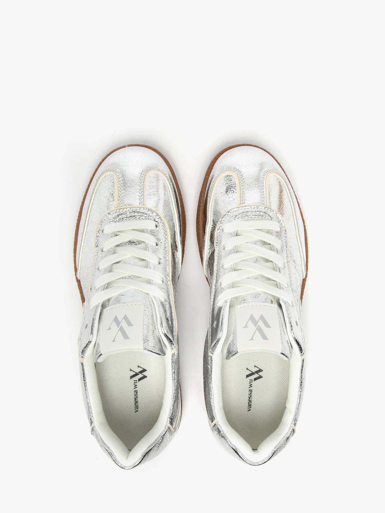 Les baskets AURA Initials en argent incarnent parfaitement l’esprit mode accessible signé Vanessa Wu. Leur similicuir texturé argent capte la lumière et apporte une touche moderne et audacieuse à vos tenues. Le monogramme blanc contrastant et les liserés en similicuir grainé écru soulignent le design avec élégance et finesse. Dotées d’un bout rond et d’une fermeture à lacets blancs, elles offrent un look rétro chic parfaitement maîtrisé. La semelle intérieure amovible à microbilles effet massant assure un confort optimal tout au long de la journée. Montées sur une semelle fine rétro camel cousue, ces baskets allient style, bien-être et praticité. Un modèle ultra tendance pensé pour celles qui aiment affirmer leur style sans compromis.